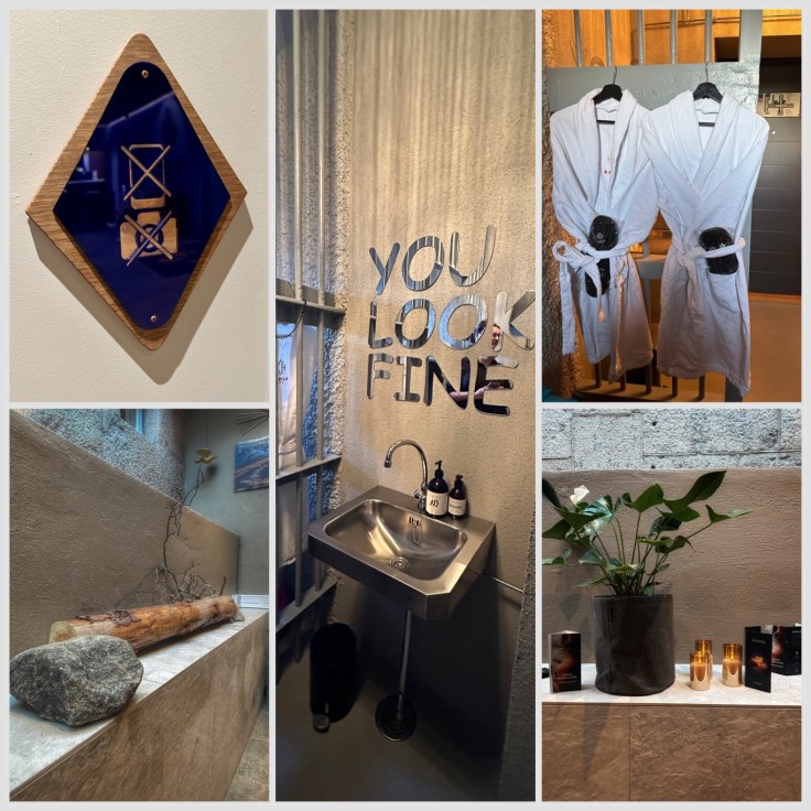 Seuraavan yön kohteemme oli Kakolan -hotelli ja siellä päädyimme eristysselliin. Mitäpä se matka olisi ilman selliyötä. Oli muuten elämys! Huoneessa oli kalterit paikallaan ja vessakin oli sellainen, kuin selleissä on. Onneksi käytävältä löytyi myös vessat ja suihkut kuitenkin. Nautimme terassilla pizzaa ja palauttelimme nestetasapainoamme. Sillä luvassa illalle oli vielä yksi tai no useampi sauna yhdessä paikassa. Menimme nimittäin vielä testaamaan Kakola span altaat ja saunat! Eikös se niin mene laulussakin, että ”viideltä saunaan ja kuudelta putkaan”. Joten toteutimme tätä ajatusta 😉