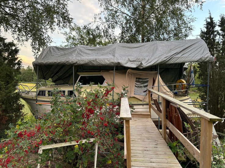 Reissumme alkoi 11.8.2023 suuntaamalla Raumalle, jossa meille oli tarjottu majoitus ja sauna Omppulasta. Majoitumme Omppulan venemajoituksessa, joka siis oli kirjaimellisesti vene kuivalla maalla! Ei siis meripahoinvointia luvassa, mutta venetunnelmaa kuitenkin! Omppulan väki oli lämmittänyt meille saunan valmiiksi. Saavuttuamme perille meille esiteltiin paikat ja ihanat pihapiirin eläimet. Tämän jälkeen pääsimmekin nauttimaan saunan lämmöstä ja ihanasta kesäillasta kauniissa puutarhassa. Saunan löylyt olivat muuten loistavat! Yömme nukuimme hyvin ja aamusta 12.8.2023 kukko toimi herätyskellonamme. Valmistimme aamupalaa kesäkeittiössä, johon meille oli varattu mm. omien kanojen munia. Oli muuten hyviä! Aamupalan jälkeen suuntasimme jatkamaan matkaa.