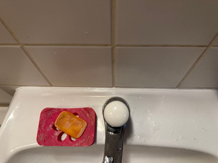 Samalla uusittiin kylppärin saumat eli uutta silikonia saumoihin.