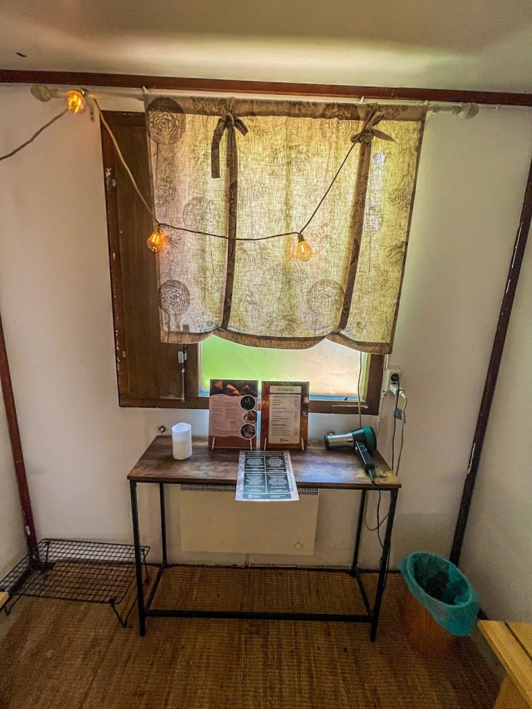 Ennen saunaa löytyy nuotiopaikka 🪵 ja henkilökunnalta voi ostaa makkaraa ja juomista.