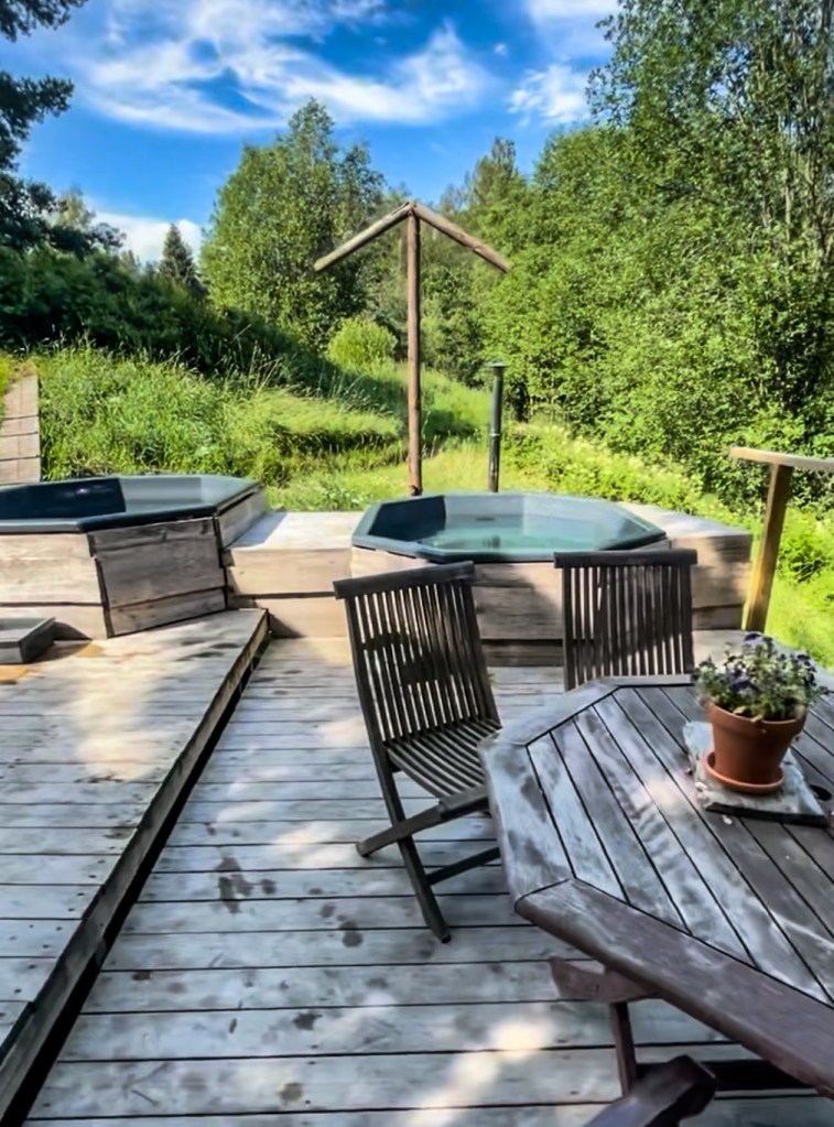 Saunalta löytyy myös 2 paljua, lämmin ❤️ ja kylmäallas 💙, jossa on tosi kiva viilentyä saunomisten jälkeen ja lämpimässä altaassa on mukava nauttia luonnonrauhasta 💚 Saunan vieressä menee Sipoonjoki, jossa voi käydä uimassa omalla vastuulla, vesi ei ole mitään kristallinkirkasta joki vettä vaan joki muistuttaa enemmin kuralammikkoa 😆 Saunalta menee polku joenrantaan.