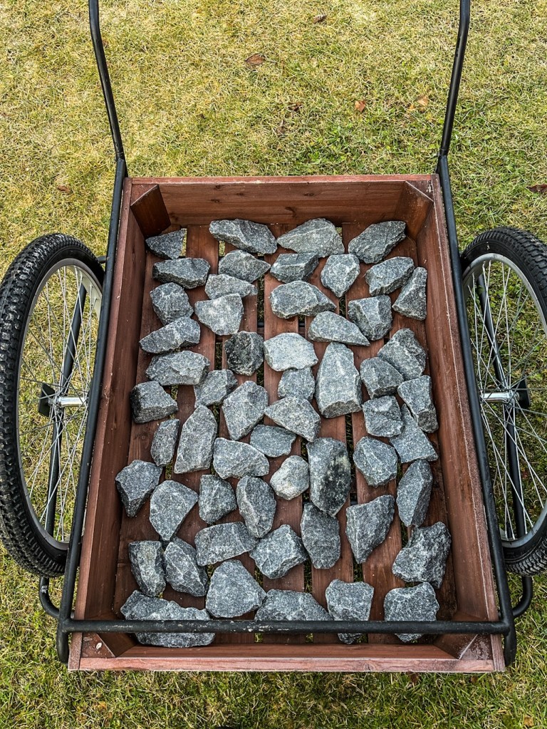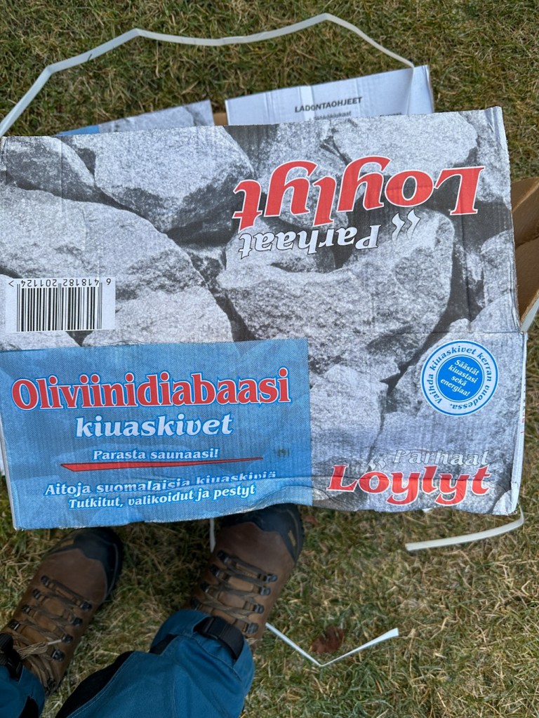 Tässä vaiheessa aloin selamaan googlea ja löysin todella hyvän sivuston https://saunologia.fi/puukiuas ja sieltä opin, että tuohon kiukaaseen kannattaa ostaa 10-15cm kiviä. Isoihin kiukaisiin ja savusaunoihin yli 15cm. Pieniä alle 10cm kiviä voi latoa ylimpiin kerroksiin. Isot kivet kestävät lämpötilojen vaihtelua paremmin 🔥