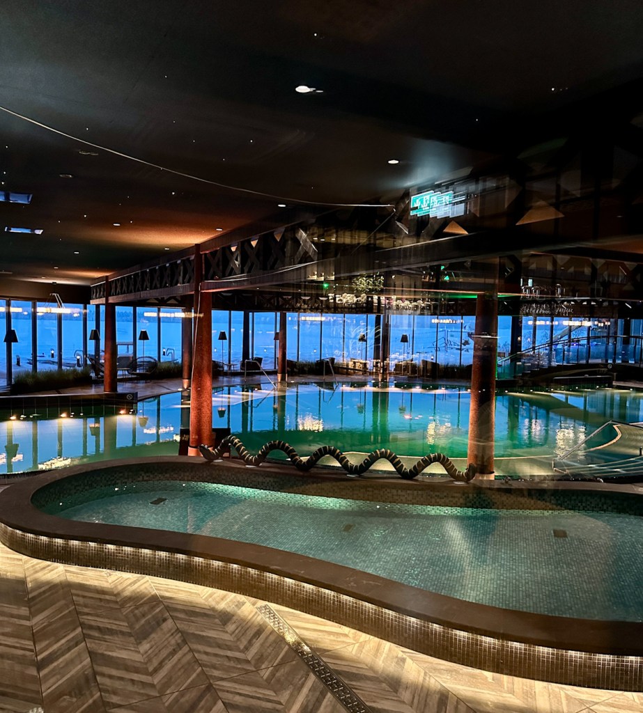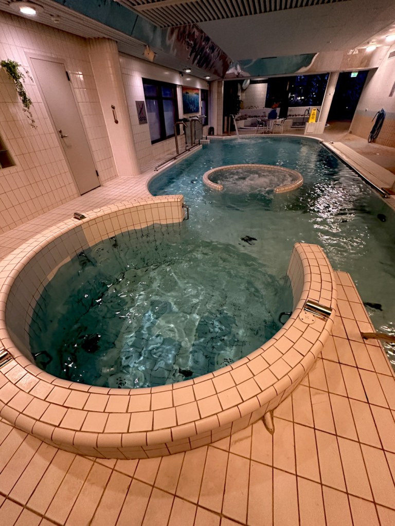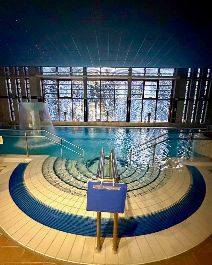 Joensuusta jatkoimme matkaa Nurmekseen, jossa kohteena oli Bomba spa ja hotelli. Nautimme herkulliset pizzat hotellin ravintolassa ja suuntasimme sitten hetkeksi Karjalaiskylän majoitukseemme. Hetken levättyä lähdimme vielä kokemaan kylpylän, jossa olimme kyllä jo kesällä käyneet. Nyt halusimme nähdä sen talven pimeydessä. Kylpylässä oli Lapin tunnelmaa, revontuliefektejä ja värejä ja tähtitaivasta. Ulkona sai istua porealtaissa. Esteettisesti yksi hienoimmista kylpylöistä kyllä!