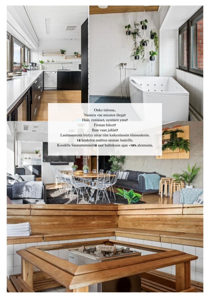 Saunat.fi Lauttasaareen tilan vuokrasta koodilla Saunamimmit10 -10% alennus.