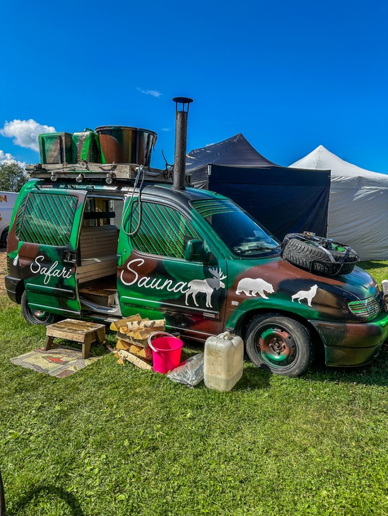 Kuvakooste päivästä. Tapahtumassa oli monenlaisia siirtosaunoja ja uusi Villa Vihta sauna.