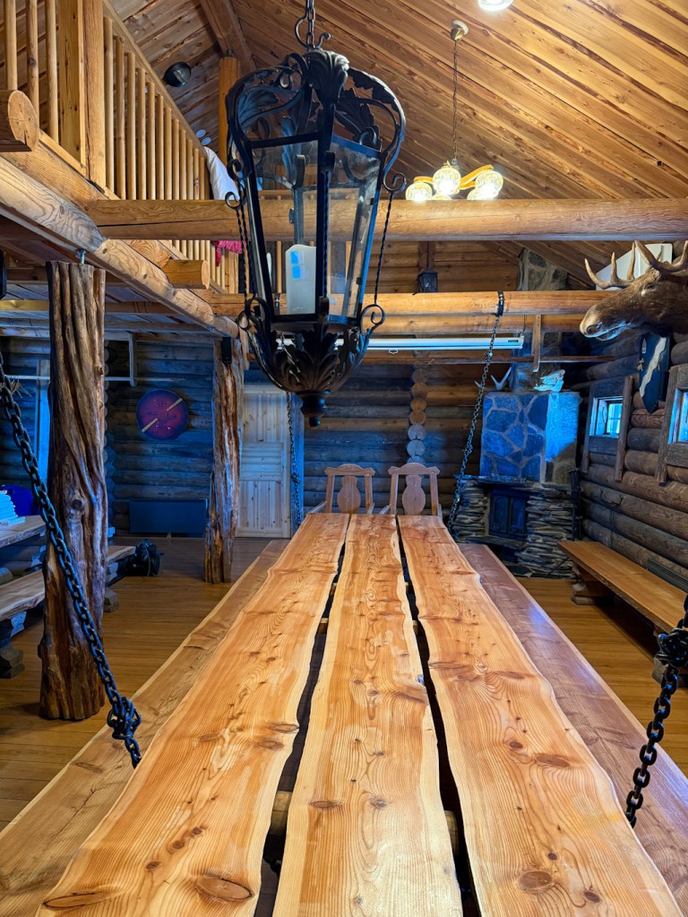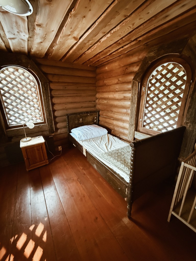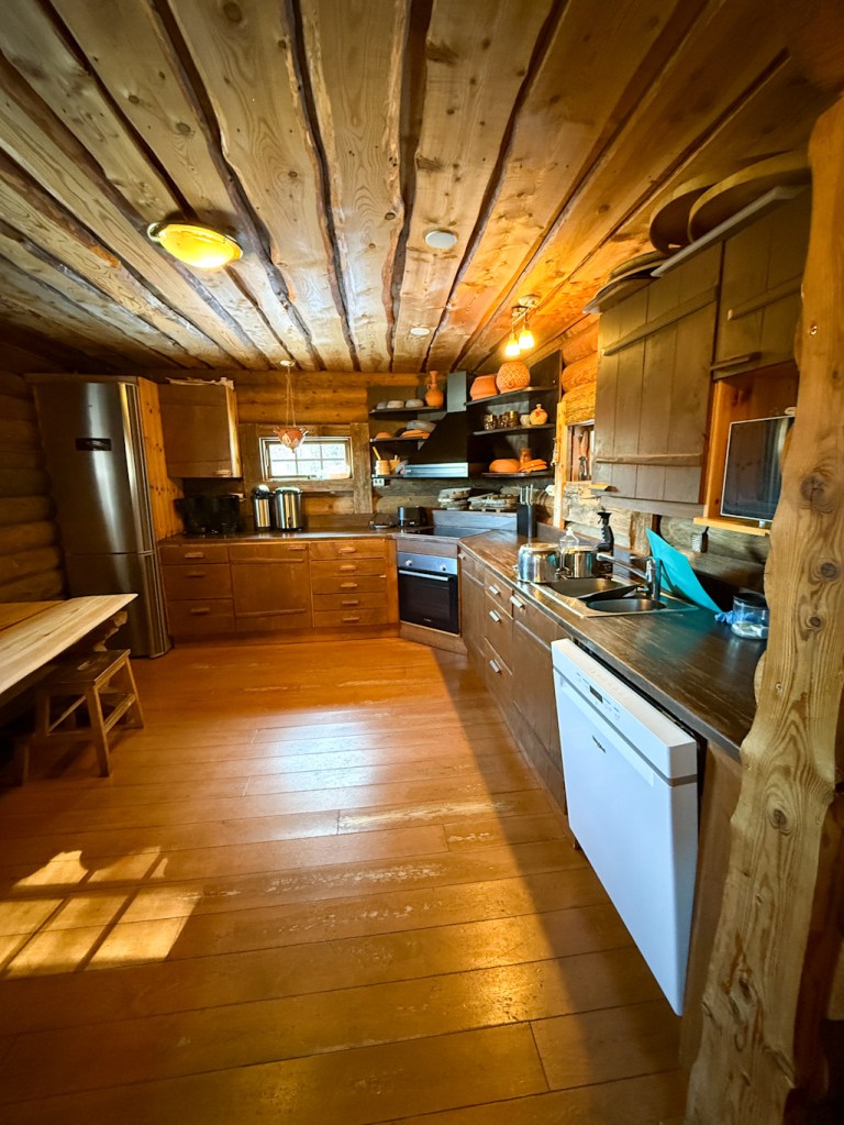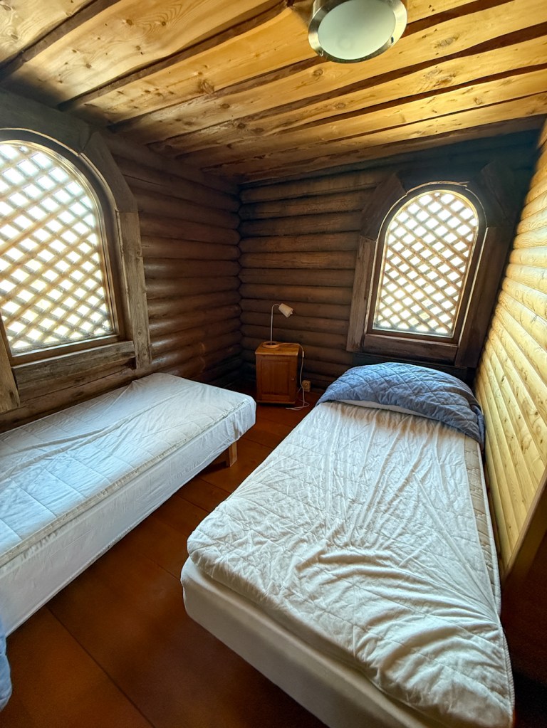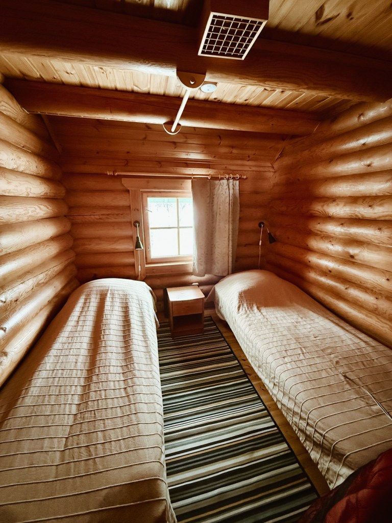 13 hyvin varustettua ja kotoisaa, itsetehtyä omasta metsästä kaadetuista hirsistä hirsihuviloita, ympäri vuoden varattavissa. 120 majoituspaikkaa.
