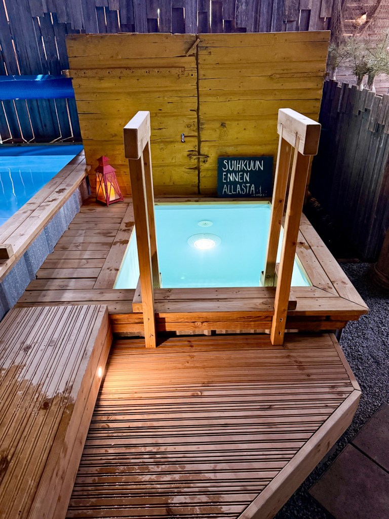 Ukkohallan Saunamaailma, 9 saunaa ja sisä- ja ulkoaltaat. Aikuiselle lipun hinta oli 20€.