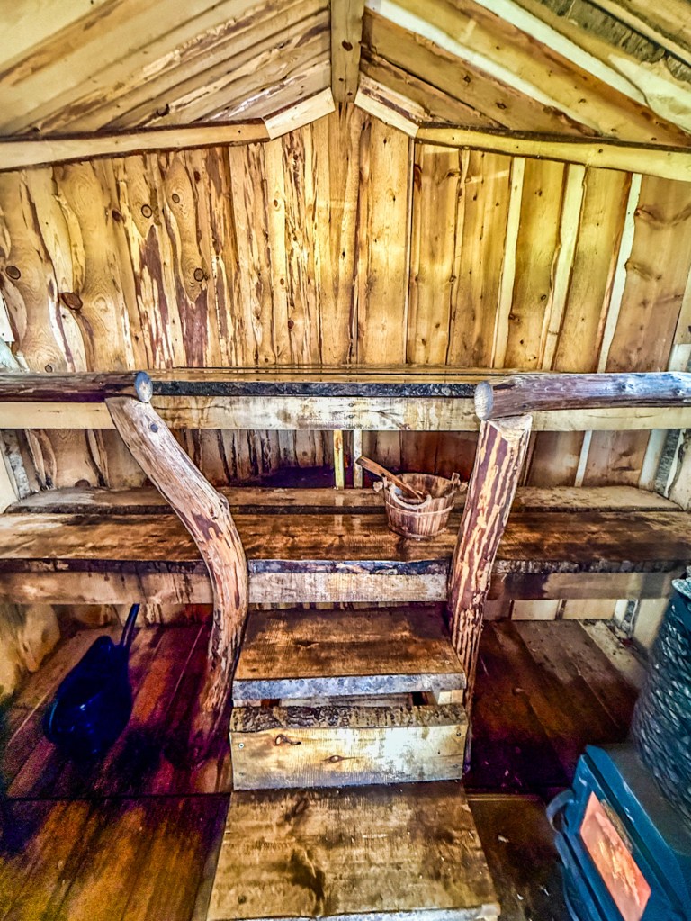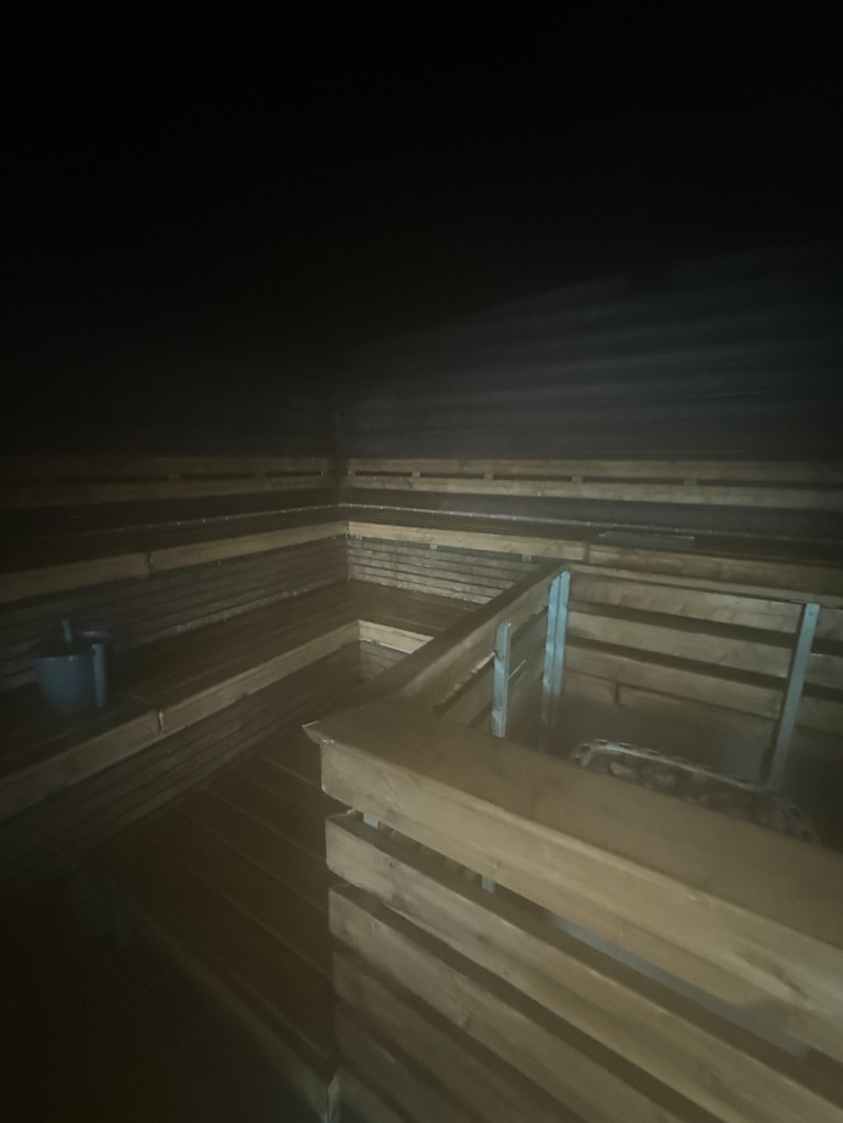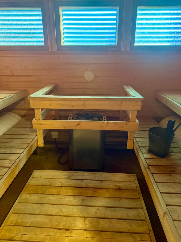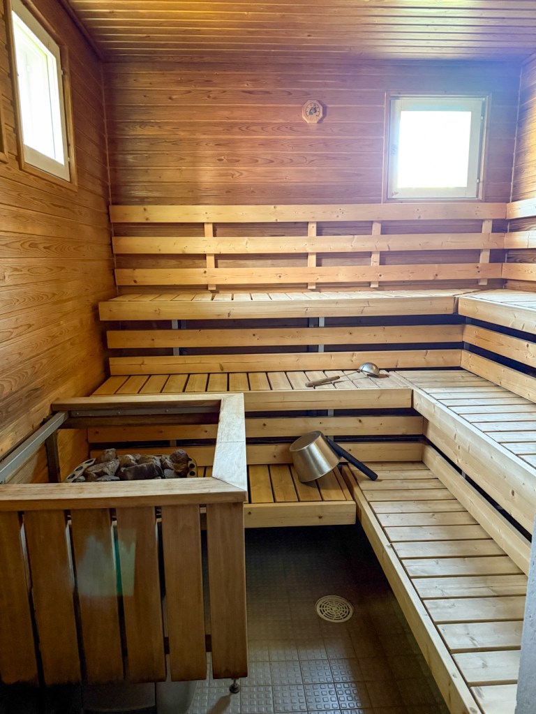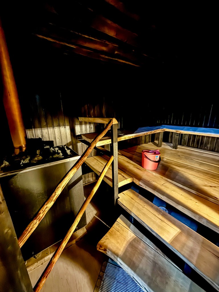 Rantasauna löytyy matkaparkin läheisyydeltä. Yleisiä vuoroja ja vuokrattavissa omaan käyttöön. Sauna on itse suunniteltu ja tehty, todella kaunis pieni sauna. Saunasta löytyi vedet ja retkisuihku ja uimaan pääsi raikkaaseen puroveteen.