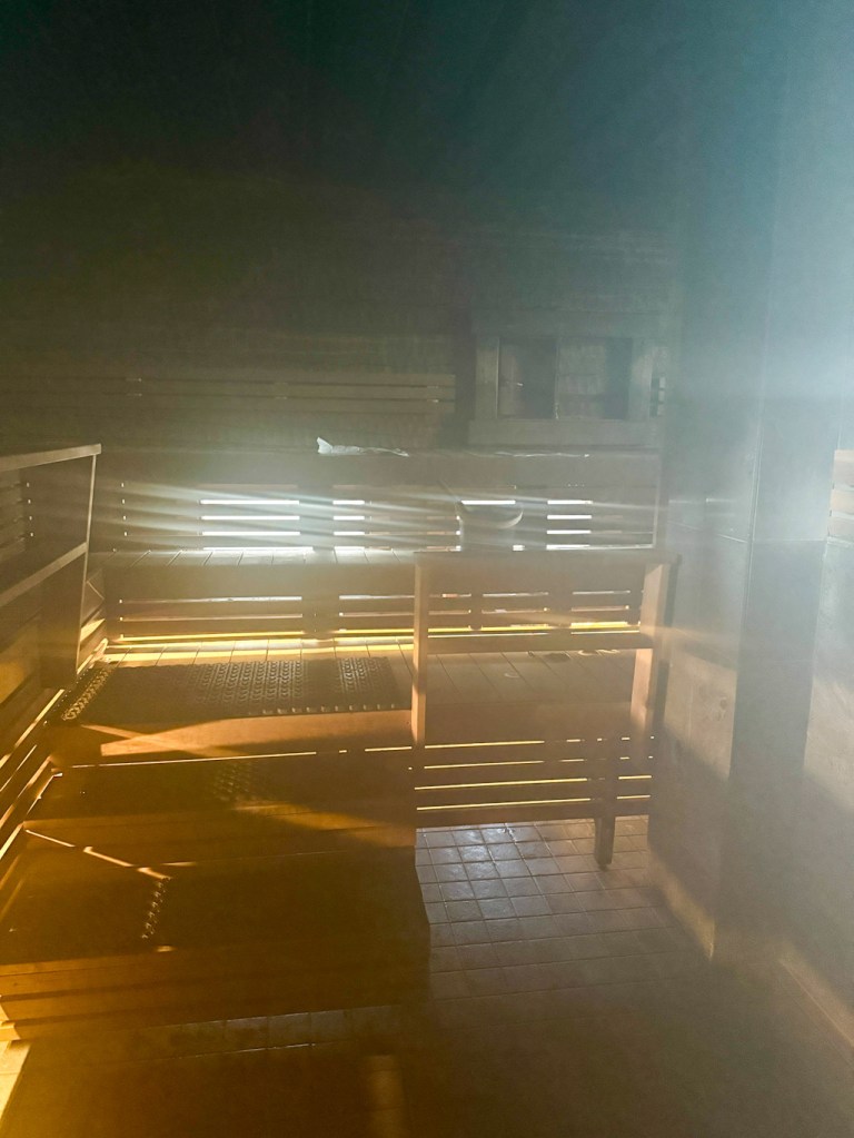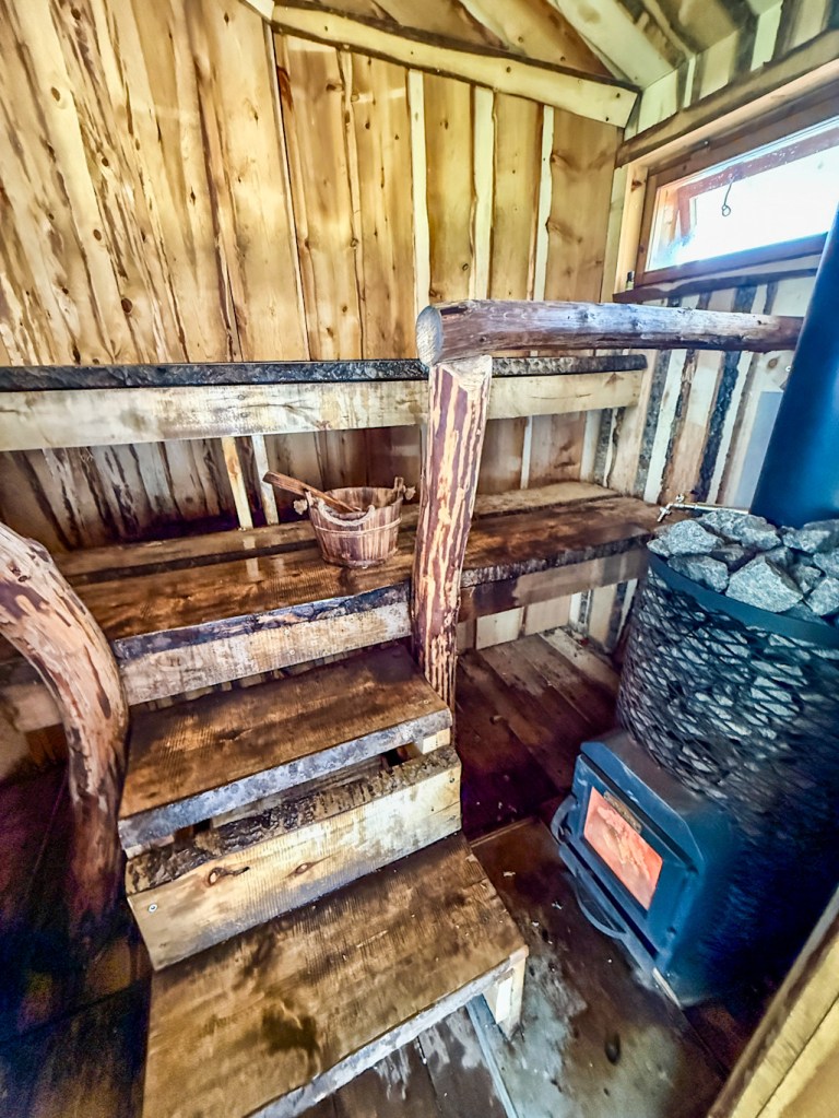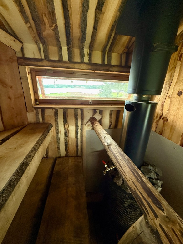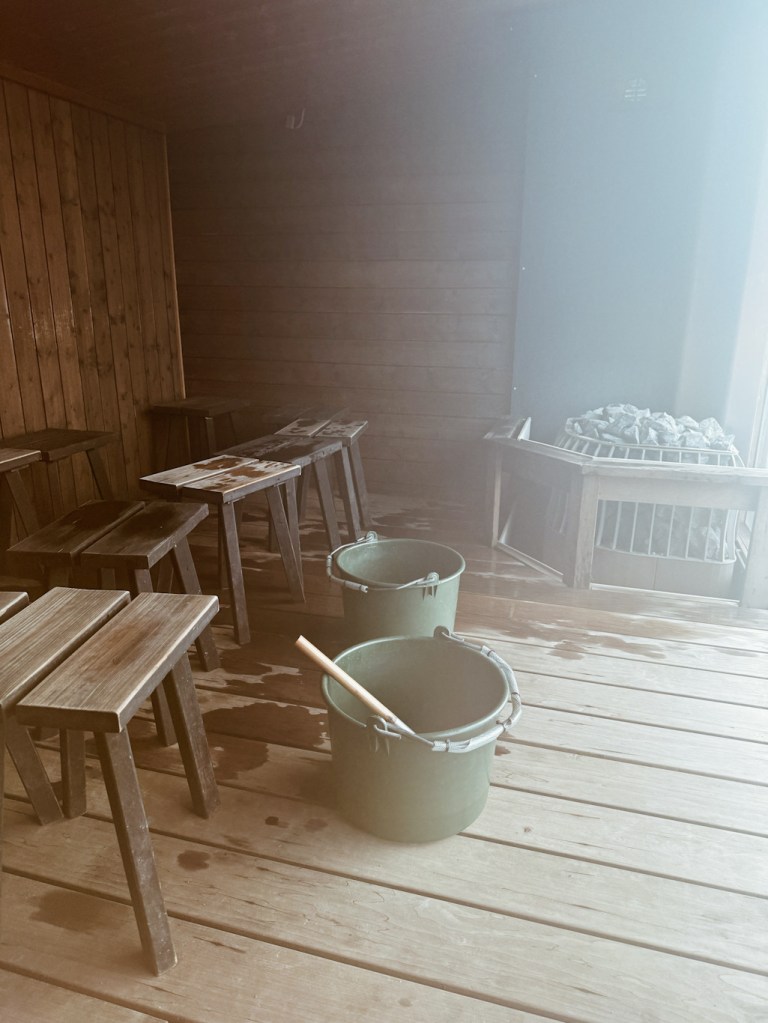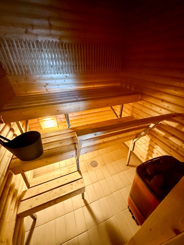 Rantasauna löytyy matkaparkin läheisyydeltä. Yleisiä vuoroja ja vuokrattavissa omaan käyttöön. Sauna on itse suunniteltu ja tehty, todella kaunis pieni sauna. Saunasta löytyi vedet ja retkisuihku ja uimaan pääsi raikkaaseen puroveteen.