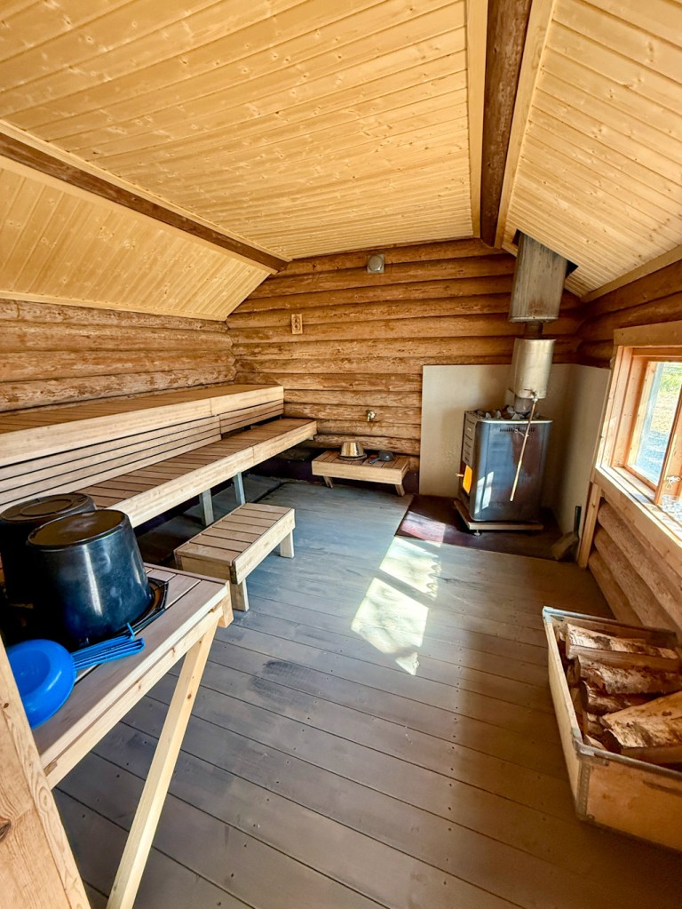 Erilainen majoitus ja todella hyvä sauna. Saunottiin klo 22:00 jälkeen ja nautittiin Lapin yöttömästä yöstä. Herättiin koirien haukkumiseen, mikä ei ollut ollenkaan huono juttu.